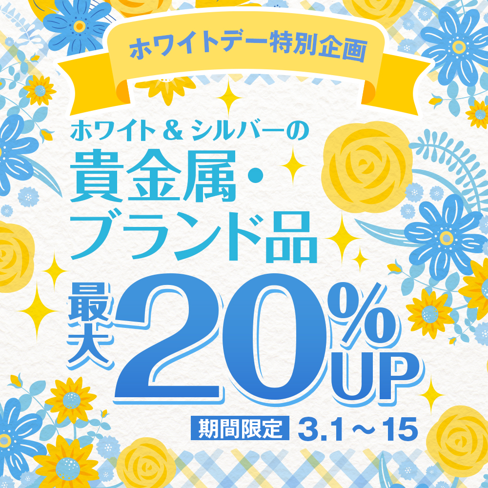 【3/1〜15限定】ホワイトデー特別企画!ホワイト&シルバーの貴金属・ブランド品 最大20%UP!