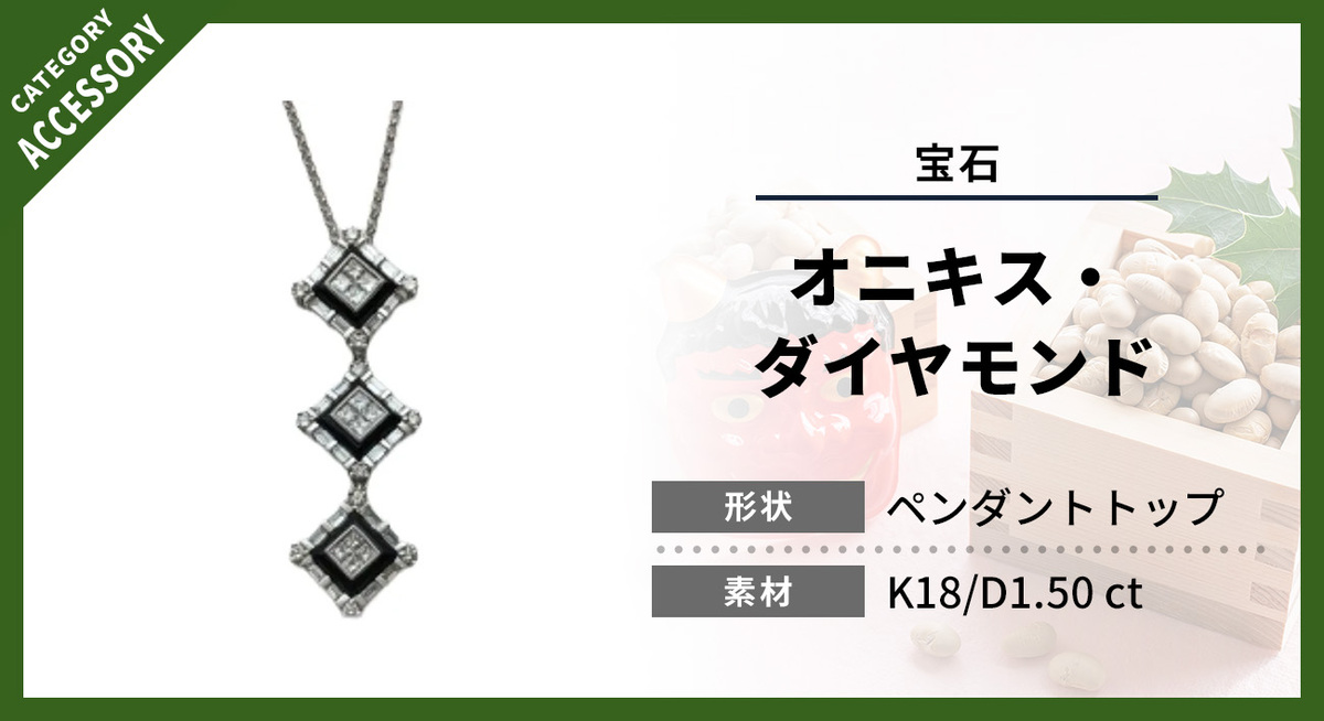オニキスとダイヤモンドを組み合わせたペンダントトップは、個性がありながらも需要が見込まれやすく、中古市場でも一定の評価を得やすい傾向にあります。